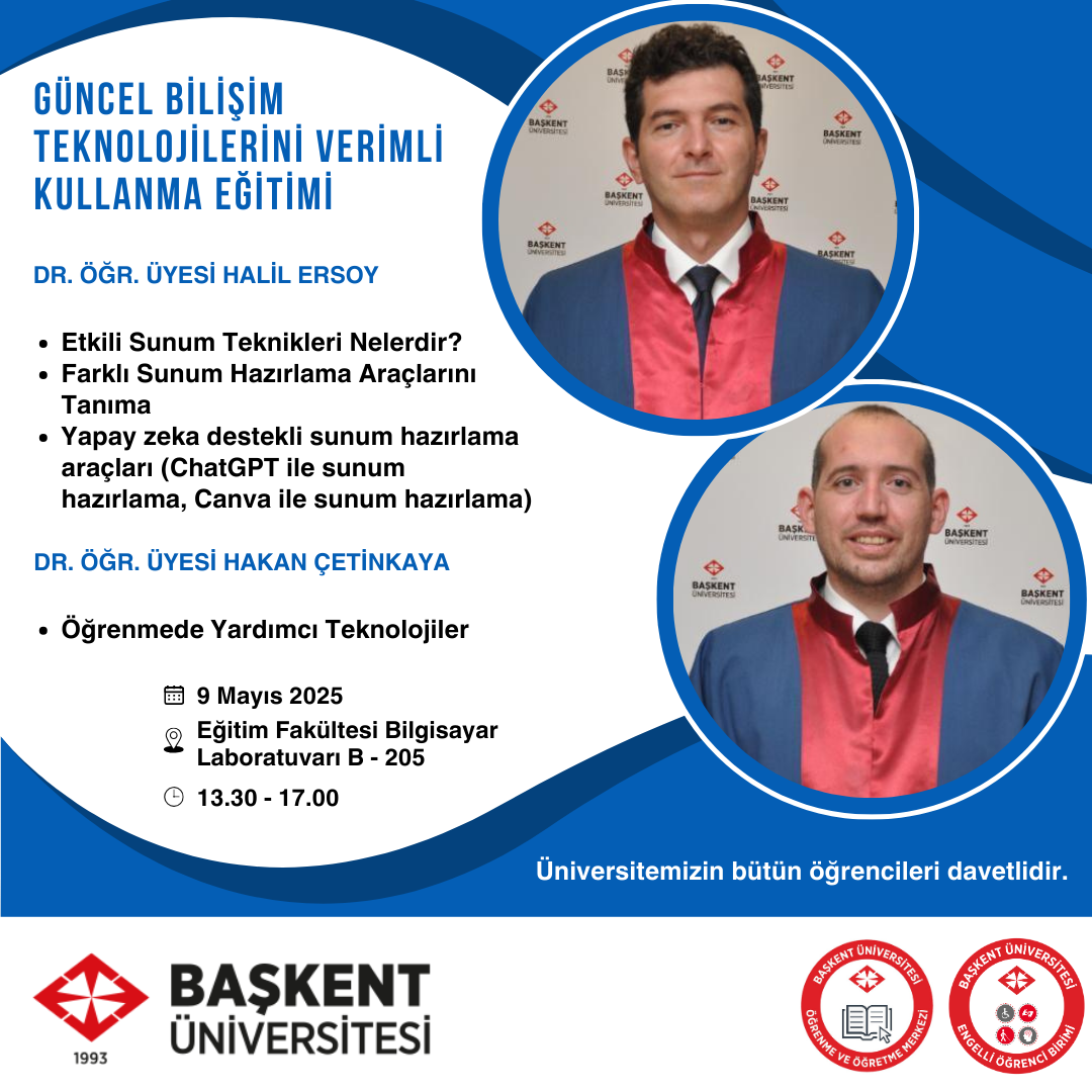 Görsel mavi, beyaz renklerden oluşan bir arka fon üzerine hazırlanmıştır. Sağ üstte Dr. Öğr. Üyesi Halil Ersoy'un fotoğrafı bulunmaktadır. Altında ise Dr. Öğr. Üyesi Hakan Çetinkaya'nın fotoğrafı bulunmaktadır.