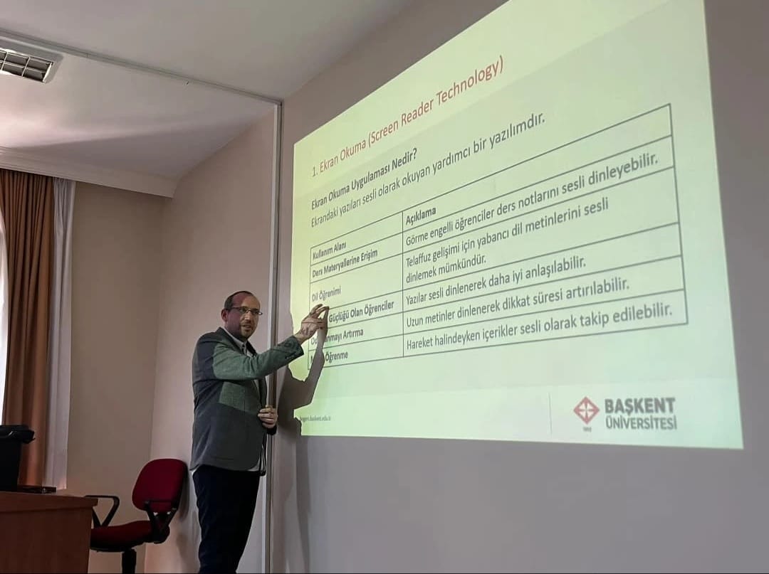 Özel Gereksinimli Yükseköğretim Öğrencilerinin Akademik ve Psikososyal Açıdan Güçlendirilmesi: Başkent Üniversitesi Projesi isimli bilimsel araştırma projemizin 7. modülü olan Güncel Bilişim Teknolojilerini Verimli Kullanma Eğitimi Dr. Öğr. Üyesi Halil Ersoy ve Dr. Öğr. Üyesi Hakan Çetinkaya'nın değerli katkılarıyla gerçekleştirilmiştir.