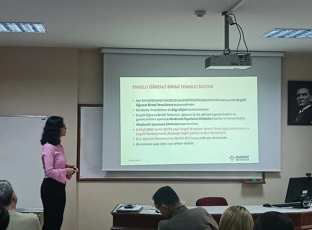 Birimimizin Sosyal Hizmet Uzmanı ve Sosyal Hizmet Bölüm Başkanı Prof. Dr. Seda Attepe Özden tarafından B.Ü. Kahramankazan Meslek Yüksekokulunda özel gereksinimli öğrencilerin ihtiyaç ve gereksinimleri bağlamında akademik personele yönelik eğitim verilmiştir.